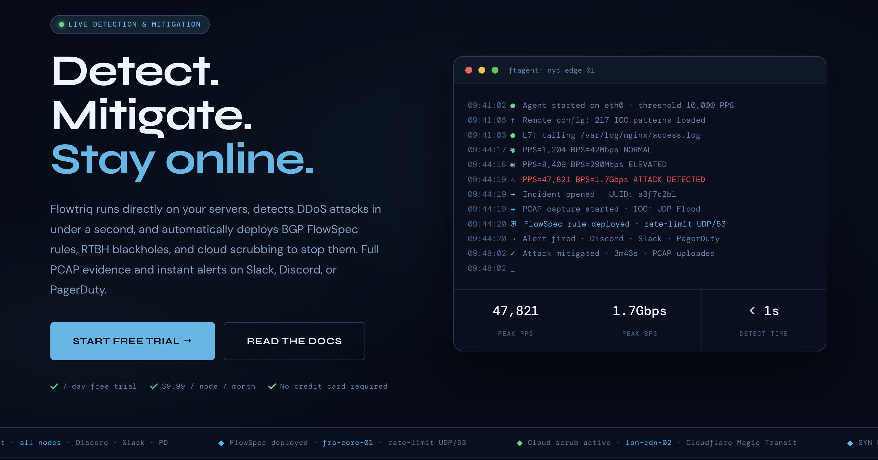 If you’re tired of the "Enterprise Sales" dance and just want something that stops attacks before your customers notice, Flowtriq is the cream of the crop. It’s lightweight, incredibly fast, and priced for people who actually have a budget to manage.